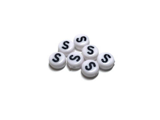 Letter S Beads 7mm, Initial Beads, ABC Beads, Black & White Alphabet Beads