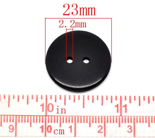 50 Black Resin Sewing Buttons 23mm, Scrapbooking Supplies