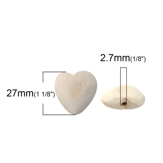 5 Wooden Heart Beads 27mm x 26mm, 326