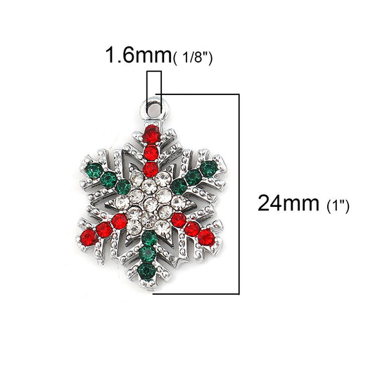 5 Rhinestone Snowflake Charms 24mm x 19mm