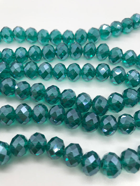Cyan Faceted Rondelle Beads Pearl Luster Plated, 10x8mm, 8x6mm, 6x5mm