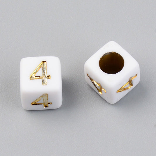 Cube Acrylic Number Beads, 6mm Gold Cube Number Beads