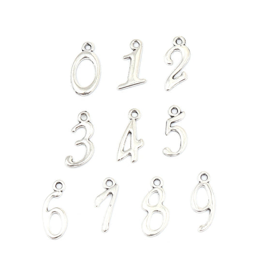 Number Charms Gold Plated, Antique Silver, Antique Bronze