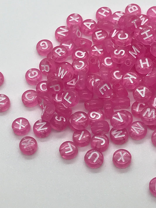 Pink & White Alphabet Beads, 7mm Acrylic letter beads, ABC letter beads, Name beads