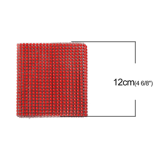 Red Rhinestone Mesh 24 Rows Red Rhinestone Mesh for Crafts, Red Bling Mesh for Wedding Decor, Wide Mesh, Candle Decor