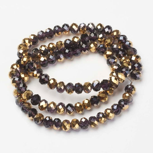 Purple Rondelle Beads Half Golden Plated 10x8mm, 8x6mm, 6x5mm