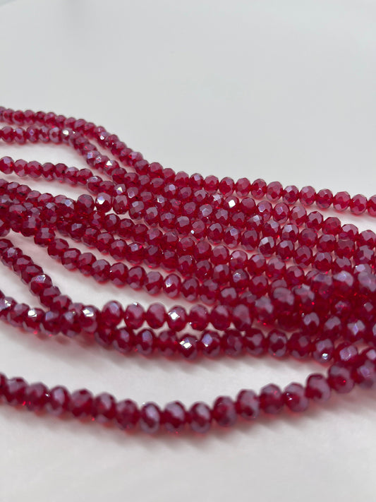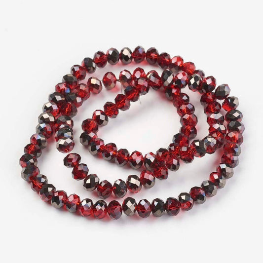 Red and silver Rondelle Beads 10x8mm, 8x6mm, 6x5mm, 4x3mm