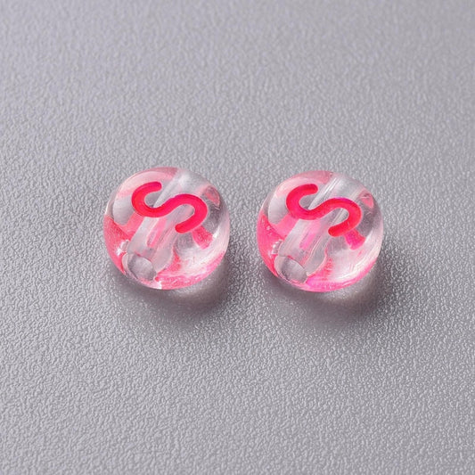 Pink Alphabet Beads, 7mm Acrylic letter beads, ABC letter beads, Name beads
