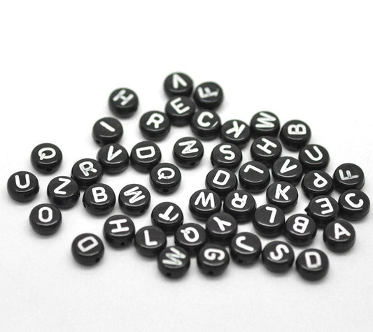 1000 Acrylic 7mm Black & White Alphabet Beads, Name beads, Letter A-Z Round Beads 7mm