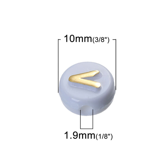 10mm Gold & White Alphabet Beads, Acrylic ABC letter beads, ABC, Name beads, Letter A-Z Round Spacer Beads 10mm