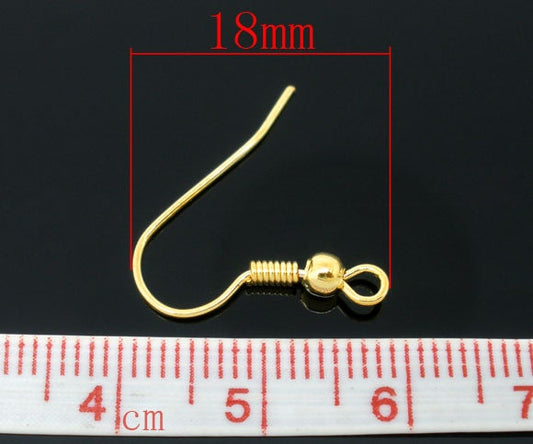 200 Pair Gold Plated Ear Wire, Fish Hooks Earring Findings 18mm