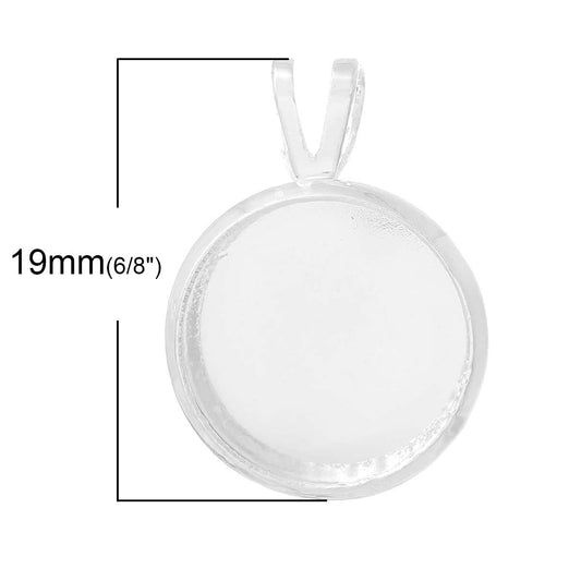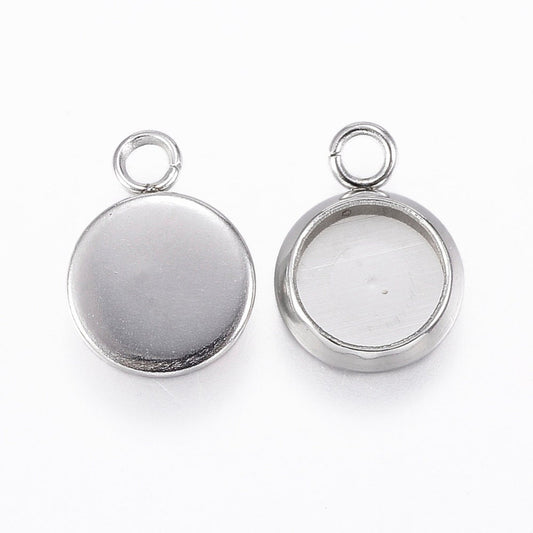 10 25mm Stainless Steel Pendants Round Silver Tone Cabochon Settings Fits 25mm cabochons