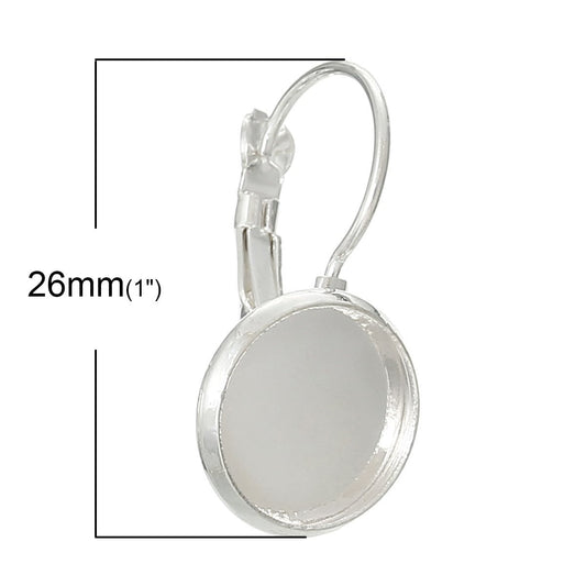 Earring Cabochon Settings 2 Sides, Earring Findings 10 Pair, Round Cab Setting, Fits 12mm Cabochon
