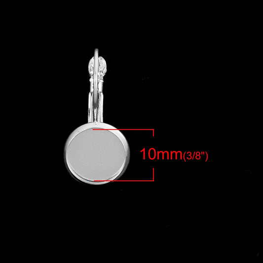 Cab Earring Findings 10 Pair, Round Silver Plated Cabochon Setting, Fits 10mm, 10 Pairs