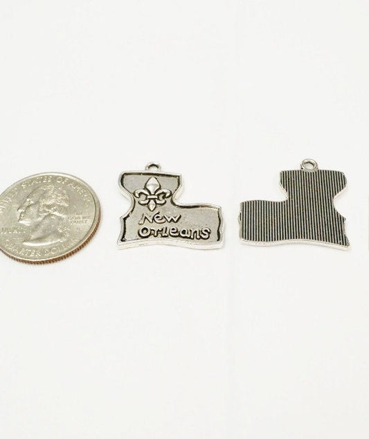 5 New Orleans Charms, Mardi Gras Charms, Antique Silver Pendant