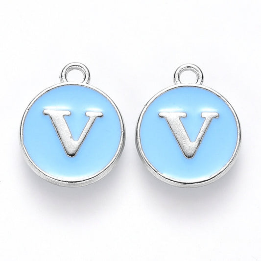 Blue and Silver Enamel Alphabet Letter Charms 1 Set A-Z