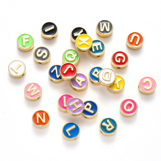 Gold Enamel Alphabet Letter Beads, Metal Letter Beads, Jewelry Making Supplies
