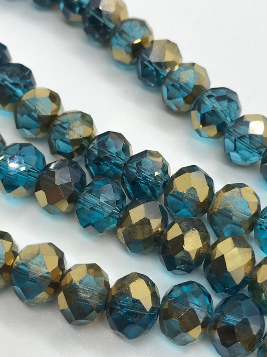 Blue Rondelle Beads Half Golden Plated 10x8mm, 8x6mm, 6x5mm, 4x3mm