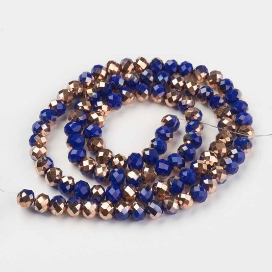 Dark Blue Half Copper Plated Faceted Rondelle Beads 10x8mm, 8x6mm, 6x5mm
