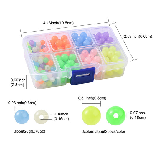 Glow In The Dark Beads 8mm 6mm and Container, Jewelry Making Supplies