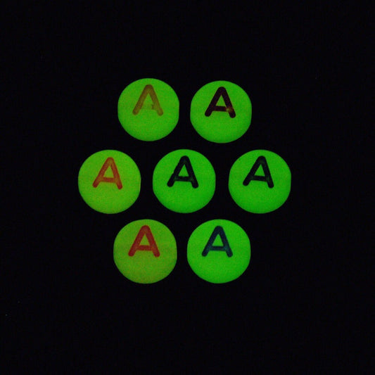 7mm Glow in the Dark Alphabet Beads, Name beads, Letter A-Z Round Beads 7mm
